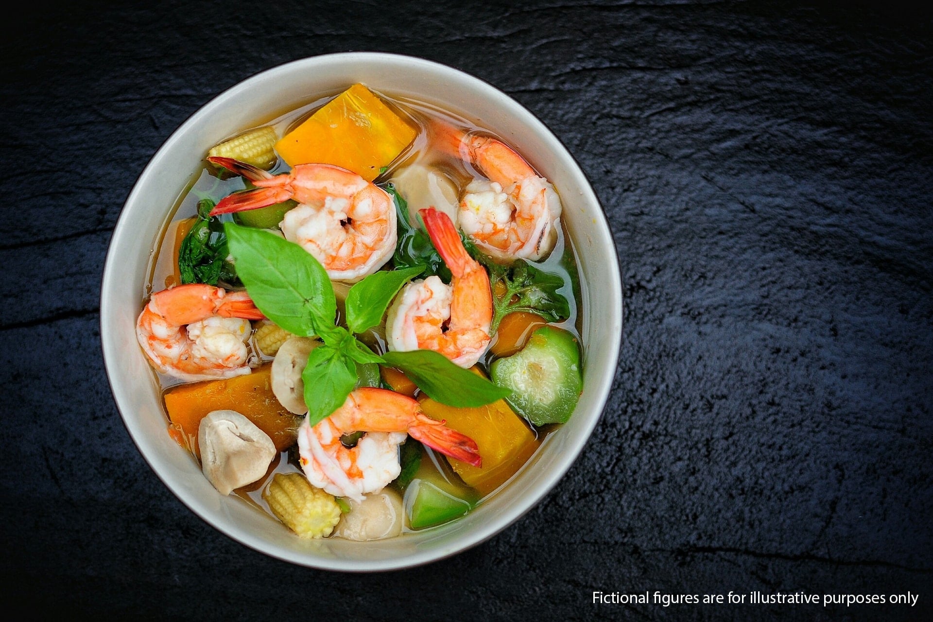 เมนูที่รวมผักพื้นบ้านไทยไว้มากที่สุด มีใยอาหารสูง โปรตีนจากกุ้งเป็นโปรตีนไขมันต่ำ และเครื่องแกง (หอมแดง พริกไทย) ช่วยกระตุ้นการเผาผลาญ
